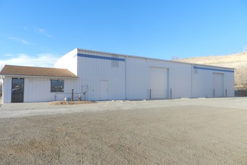 Industrial warehouse exterior at 2520 N River Road, Olathe, CO, featuring a prominent entrance, parking area, and landscaped surroundings, relevant to commercial real estate listing.