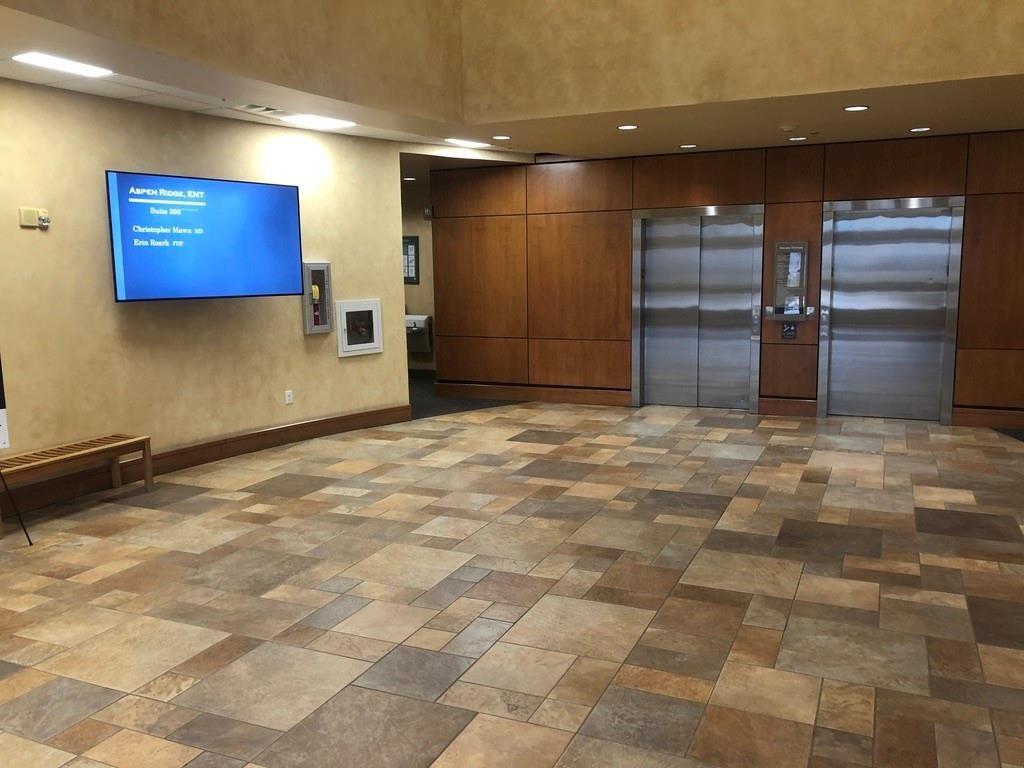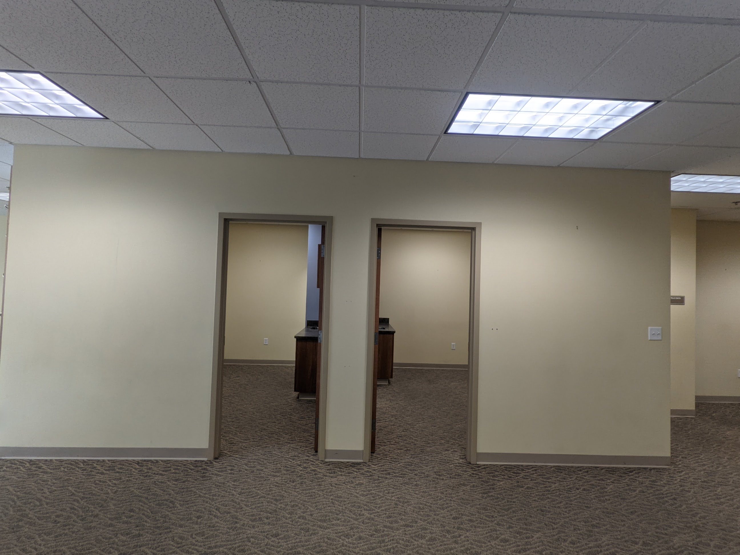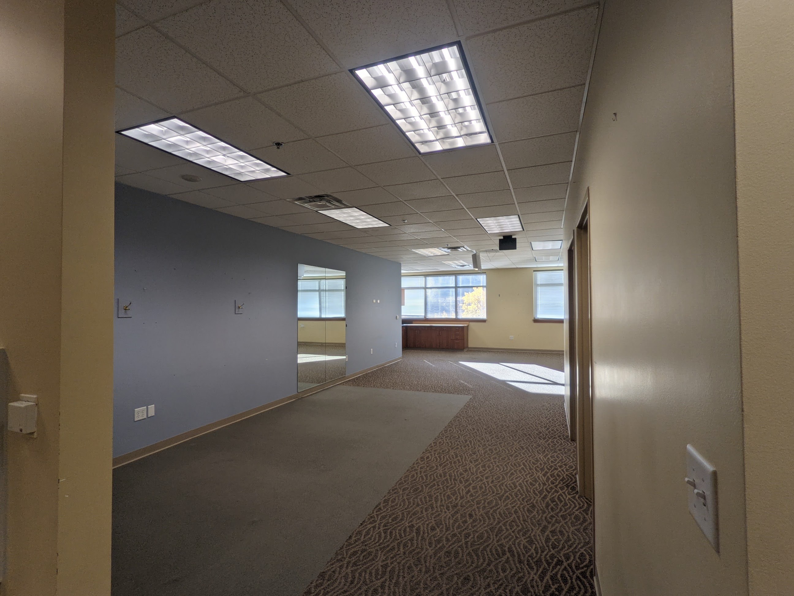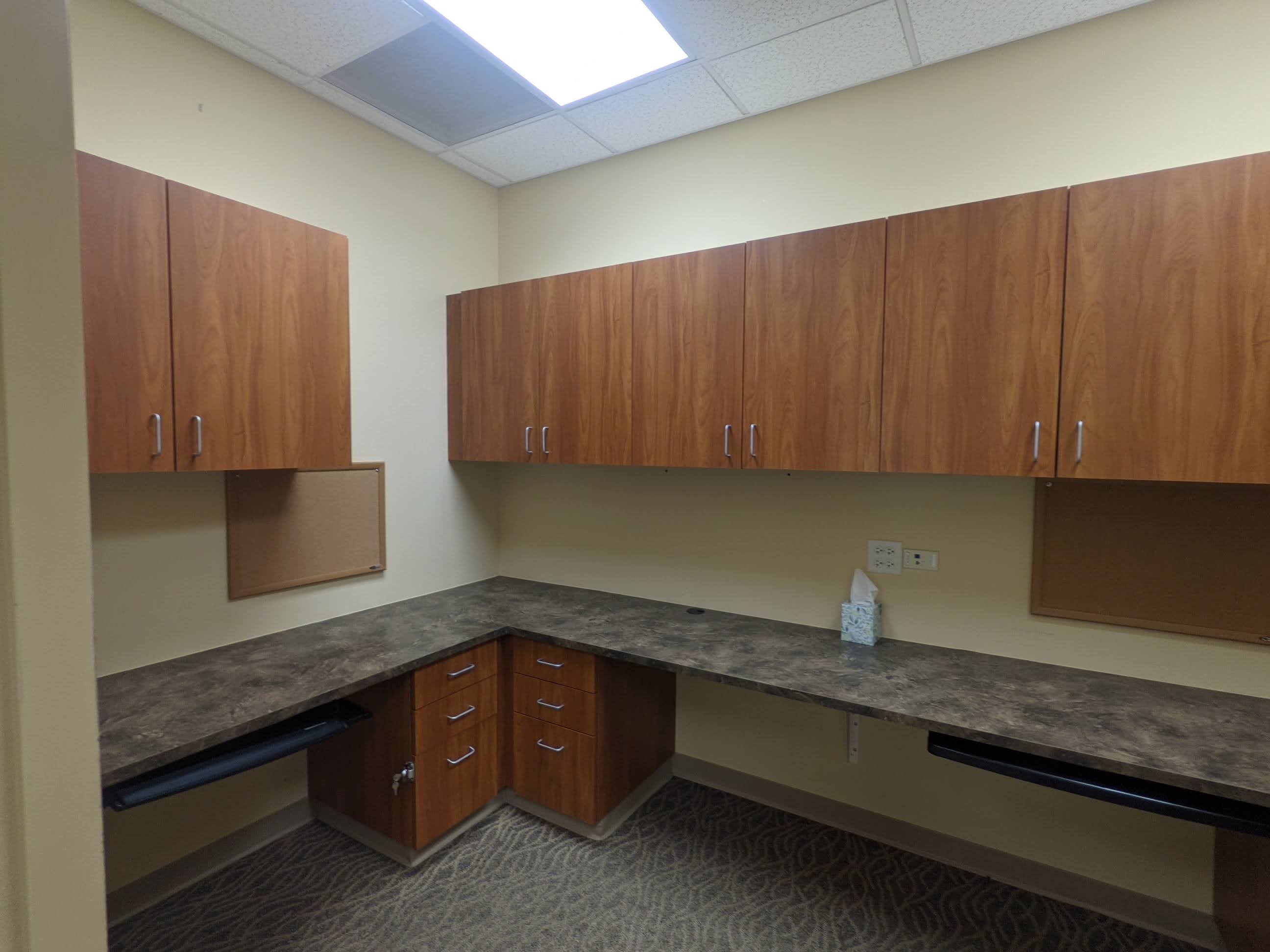 Turnkey physical therapy space inside Class A medical office building on campus in Frisco, CO. Two private offices, a staff office and reception area in this occupational space plan.